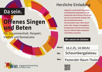 Lesen Sie mehr zum Thema unter: www.bistum-trier.de/ehrenamt/aktiv-dabei-sein/aktion-offenes-singen/
