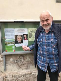 Gunther Emmerlich vor der Brüderkirche Neudietendorf, vor dem Konzert am 29. Oktober 2023