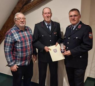 Zur ersten wieder regulären und ohne besondere Infektionsschutzvorkehrung durchgeführten Jahreshauptversammlung der Ortsteilfeuerwehr Apfelstädt konnten Beförderungen von einer Kameradin und mehreren Kameraden ausgesprochen werden. Ein besonderes Ereignis an diesem Abend war die Ehrung des langjährigen Ortsbrandmeisters und Wehrführers von Apfelstädt, Herrn Brandmeister Rainer Hohmann für über 40 Jahre aktive und pflichttreue Dienstzeit in der Feuerwehr. Im Namen des Thüringer Ministerpräsidenten konnte ich gemeinsam mit dem Ortschaftsbürgermeister Rainer Seyring und der Wehrführung das Goldene Brandschutzehrenzeichen am Bande an ihn überreichen. Er ist in seinem hessischen Heimatort Eltmannshausen als junger Mann in die dortige Freiwillige Feuerwehr eingetreten und in Apfelstädt nach seinem Umzug und der Gründung seines Landwirtschaftsbetriebes in die hiesige Feuerwehr gewechselt. Hier hat er sich aktiv eingebracht und stand der Feuerwehr als gewählter Ortsbrandmeister und zuletzt als Wehrführer vor. Vielen Dank nochmals für Dein unermüdliches Wirken für die Belange der Feuerwehr und der Sicherheit der Bevölkerung. Es ist gut, dich mit Rat und Tat auch weiterhin in den Reihen der Einsatzkräfte zu haben.