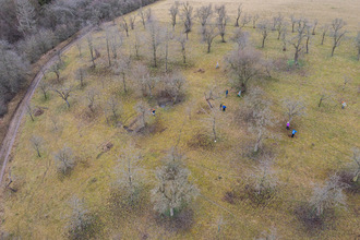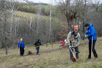 Als ein weiterer Schwerpunkt der Aktion wurde der Steilhang des Streuobstareals „Am Kirchberg“ über weitere ca. 90 m Länge entbuscht und die Sträucher und Büsche nach Möglichkeit vom Steilhang entfernt. Trotz schwieriger Arbeitsbedingungen aufgrund der feuchten Witterungsverhältnisse konnte auch dort ein wirklich deutliches Stück des Hanges wieder als Streuobstwiese kenntlich gemacht werden. In diesem Gebiet finden sich auch häufig Feldhasen und Rehe wieder sowie Greifvögel wie beispielsweise der Sperber.