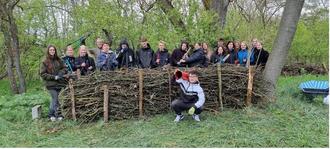 Die Schülerinnnen und Schüler des Biologieleistungskurses der 11. Klasse am von-Bülow-Gymnasium Neudietendorf haben am Dienstag, den 16.04.2024 gemeinsam mit ihrem Lehrer Herrn Dr. Steffen Möller auf der Streuobstwiese am Geyersberg in Kornhochheim eine Benjeshecke errichtet. Nachdem die Obstbäume auf der Wiese vom NABU Nesse-Apfelstädt im Frühjahr geschnitten wurden, musste das Schnittgut noch zerkleinert und entsorgt werden. Eine Totholzhecke, die wertvollen Lebensraum für nachfolgende Tiere und Pflanzen liefert, wurde also angelegt. Mit entsprechendem Werkzeug ausgestattet und -trotz anfänglichem Regen- voller Energie konnte in 2 Stunden von den 20 Schülerinnen und Schülern eine neue Hecke angelegt und befüllt werden. Jetzt heißt es warten und beobachten, wie sich alles im Lauf der nächsten Jahre entwickeln wird. Ein Dankeschön für die gute Zusammenarbeit an alle Beteiligten, das Ergebnis kann sich in jeder Hinsicht sehen lassen.