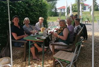 Bei herrlichem Sonnenschein trafen wir uns 15 Uhr am Bürgerhaus in Gamstädt mit 7 Gästen zu einem kleinen Spaziergang zum Fürstenhof nach Frienstedt. Hier hatten wir einen Tisch für ein gemütliches Kaffeetrinken reserviert. Auf sonnigen Wegen entlang der Gartenanlagen, vorbei an Feldern mit blühenden Holunderbüschen und weiter durch das Wohngebiet von Frienstedt, kamen wir erzählend und gut gelaunt zum Fürstenhof. Ein im schattigen Grün zurecht gestellter Tisch begrüßte uns. Die Möglichkeit, den Weg per Auto zurückzulegen, wurde auch genutzt. Bei selbst gebackenem Kuchen, Kaffee oder Eisschokolade und vielen Neuigkeiten aus Gamstädt, wie z.B. Eröffnung der Arztpraxis im Juli mit gleich 2 Ärzten, dem aktuellen Yoga-Kurs und Gesundheitstipps für Körper, Geist und Seele (Natron-Fuß- oder Vollbäder und die Verwendung und Zubereitung von Kräutern) haben wir einen sehr wohltuenden und stärkenden Nachmittag verbracht.