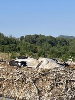 Mal sehen wie sich die zwei Weißstörche entwickeln und ob sie zukünftig in der Nähe heimisch werden. Dank der Unterstützung mit einer Hebebühne durch die in Kornhochheim ansässige Brauer Arbeitsbühnen GmbH, konnte die Beringung im Rahmen der ehrenamtlichen Arbeit des Weißstorchbeauftragten durchgeführt werden.