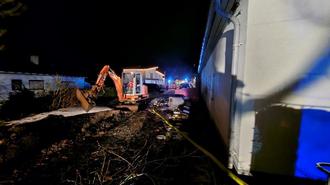 Beim ehemaligen Einkaufsmarkt im Ortsteil Steinheid kam es auf aufgrund von Starkregen zu einem Wassereinbruch im Gebäude. Dies wurde schnellstmöglich durch die Kameradinnen und Kameraden der Ortsteil-Feuerwehr Steinheid mittels 2 Pumpen eingedämmt. Im weiteren Zuge der Maßnahmen wurde mithilfe eines Minibaggers ein Graben am Gebäude entlang gezogen, um die Wassermassen abzuleiten. Aufgrund der Dunkelheit musste die Ortsteil-Feuerwehr Siegmundsburg zur Ausleuchtung der Einsatzstelle nachalarmiert werden. Dank an die Kameradinnen und Kameraden der Bergwacht Scheibe-Alsbach für die Versorgung mit Kaffee und Getränken währen des Einsatzes.