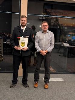 Im weiteren Verlauf wurde der Kamerad Toni Müller zum ehrenamtlichen Gerätewart der Ortsteilfeuerwehr Piesau berufen. Auch er erhielt feierlich seine Berufungsurkunde und einen Blumengruß übergeben.