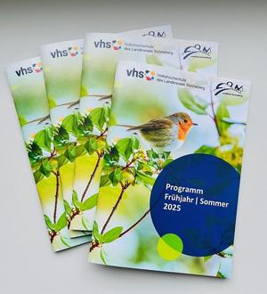 Das neue vhs Programmheft Frühjahr-Sommer 2025 (Foto: LRA SON, M. Volk)