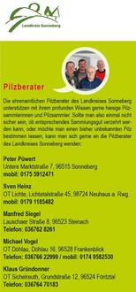 Vorgestellt und übergeben wurde außerdem ein neues Faltblatt, das die Ehrenamtlichen Beauftragten des Kreises mit ihren Kontaktdaten vorstellt. Mit dem von der Sonneberger Firma Trautmann Druck und der Pressestelle des Landratsamtes entwickelten Flyer will der Landkreis die Öffentlichkeitsarbeit seiner Ehrenamtlichen Beauftragten unterstützen und die Bürgerinformation stärken - so auch für die fünf Pilzberater. Mehr dazu unter https://www.kreis-sonneberg.de/buergerservice/beauftragte/