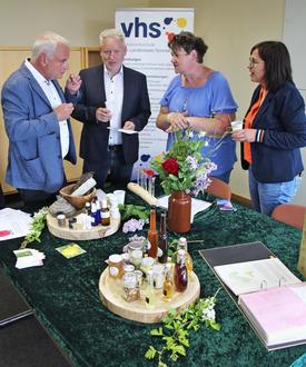 Seit kurzer Zeit läuft der Musikschulunterricht bereits wieder erfolgreich vor Ort. Die Volkshochschule wird ab dem diesjährigen Herbstsemester in Neuhaus am Rennweg mit Kurs-Angeboten einsteigen. Hierauf wollte der Kreis mit der öffentlichkeitswirksamen Eröffnung einstimmen. Während die Musikschule verschiedene musikalische Angebote vorstellte, gab die VHS einen kleinen Einblick in ihr breites Spektrum der Erwachsenenbildung. Betreut durch Kursleiter Michael Rammner wurden im Gesundheitsraum einerseits viertelstündige Schnuppereinheiten mit dem Theraband, dem Pezzi-Ball sowie Hanteln durchgeführt. In einem weiteren Raum bot Kursleiterin Dana Bardutzky für alle Interessierten ein Rätsel zum Geruchssinn, selbstgemachte Limonade zum Probieren sowie einen Schautisch mit einheimischen Kräutern und Pflanzen an. Zudem gab es eine kleine Ausstellung von Acryl-Malereien aus Kinder- und Erwachsenen-Kursen sowie Infomaterialien zu den Fachbereichen der VHS.