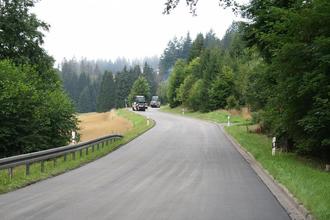 Sonneberg, 16. August 2023 - Im Auftrag des Landkreises Sonneberg erhält die Kreisstraße 35 zwischen Ernstthal und Piesau in dieser Woche eine neue Fahrbahn. Konkret wird auf einem 1,9 Kilometer langen Abschnitt vom Ortsausgang Ernstthal bis zur ehemaligen Kreisgrenze zwischen Sonneberg und Saalfeld-Rudolstadt eine Oberflächensanierung durchgeführt. Auf einer Fläche von rund 12.500 Quadratmetern werden rund 1.000 Tonnen Asphaltdeckschicht aufgebracht und verdichtet.