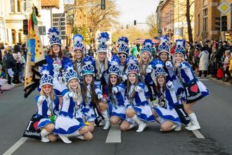 Die Duhlendorfer Funkengarde bei Ostthüringens größtem Karnevalsumzug durch die Duhlendorfer Innenstadt