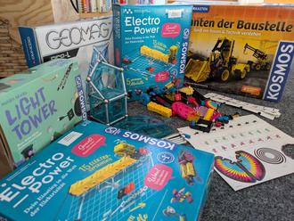 Und damit keine Langeweile aufkommt, gibt es mit dem neuen Jahr noch weitere Angebote. Ab sofort stehen auch die Kosmos-Baukästen Elektro Power, Light Tower sowie Giganten der Baustelle zur Verfügung, ebenso wie Geomag-Sets. Damit kann ab sofort unter der Anleitung von Andreas Bauer noch mehr über Elektrizität und Licht gelernt werden, Magnetismus kann erforscht oder Baustellenfahrzeuge können konstruiert werden. Natürlich stehen die Baukästen auch stets während der Öffnungszeiten der Bibliothek zur Nutzung zur freien Verfügung.