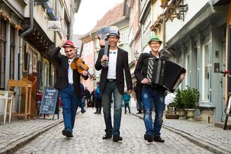 Mal kraftvoll und mitreißend, mal leise und verträumt: Das Trio KlangArt liefert mit seiner Mischung aus Swing Jazz, Chanson, Tango und Klezmer einen beschwingten Start in den Brunnenfestsonntag.