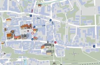 Auch der Wochenmarkt musste verlegt werden. Die Händler erwarten Sie immer dienstags von 8 bis 18 Uhr nun in der Markstraße. Wegen des Wochenmarktes besteht daher von Montag 18.00 Uhr bis Dienstag 18.00 Uhr ein Halte- und Durchfahrtsverbot in der Marktstraße. Widerrechtlich abgestellte Auto müssen kostenpflichtig abgeschleppt werden.