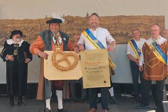 Meine Damen und Herren, liebe Festgäste, begrüßt mit mir den Brunnenmeister des 38. Bornquas, Alexander Franz.“
