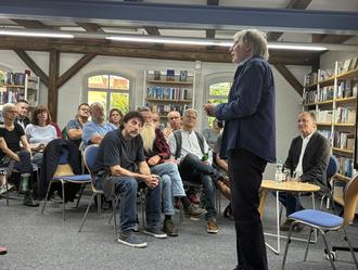 Große Aufmerksamkeit fand auch die Lesung von Dr. Hubertus Knabe aus der aktualisierten Neuauflage seines Buchs „Der 8. Mai als Tag der Befreiung? Das Kriegsende in Ostdeutschland“ am 20. Mai in der Stadtbibliothek. Nüchtern und sachlich schilderte der prominente Historiker und Gründungsdirektor der Gedenkstätte Berlin-Hohenschönhausen die Nachkriegszeit im Osten des Deutschen Reichs und danach in jenen Territorien, die seit Sommer 1945 zur Sowjetischen Besatzungszone wurden. Das wichtigste Kriegsziel der Roten Armee, so Knabe, sei keineswegs eine „Befreiung“ gewesen, sondern die militärische Niederschlagung Hitlerdeutschlands. Dies war mit Plünderungen und Zerstörungen, Massenvergewaltigungen und Liquidierungen verbunden, wobei sich die Gewalt auch gegen sowjetische Kriegsgefangene in Deutschland, die eigenen Landsleute also, gerichtet habe. Der Lesung schloss sich eine Diskussion von beklemmender Eindringlichkeit an, in der auch unterschiedliche Sichtweisen und verschiedene Deutungsperspektiven ausgetauscht wurden. Das Narrativ der „Befreiung“ sei auch deshalb zu hinterfragen, weil im Osten Deutschlands unter sowjetischer Besatzung erneut eine Diktatur errichtet wurde.