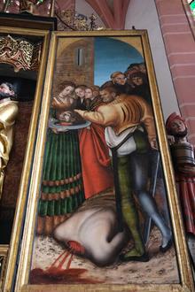 Erstmals findet nun am Altar eine Führung speziell für Kinder statt. Ziemlich gruselig ist die Tafeldarstellung Cranachs auf dem Neustädter Altarretabel, als Johannes seinen Kopf verlor. Und doch ist es gerade diese Szene auf dem Retabel, dass bei Kindern die meisten Fragen auslöst. Unter dem Titel „Als Johannes seinen Kopf verlor“ wird nun neben der Geschichte rund um den Namensgebender der Neustädter Stadtkirche kindgerecht auch die Geschichte des Altars und seiner Darstellung erzählt. Die Führung dauert 60 Minuten und ist für Kinder 3. bis 6. Klasse konzipiert.