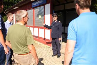 Wenn Gästeführer Harald Richter zu einem Rundgang auf den Bahnhof einlädt, wissen Insider: Hier schlägt das Herz eines Vollbluteisenbahners. In den 1980iger Jahren leitete Harald Richter als Bahnhofsvorsteher den Neustädter Bahnhof und lenkte somit aktiv die Geschicke der Deutschen Reichsbahn in diesem Ort.