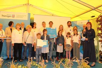 Die Delegation aus Dreba freut sich sehr, stellvertretend für den Ort den Preis und die Ehrung in Empfang zu nehmen.