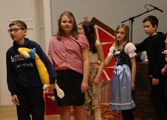 Die aufmerksamen Zuschauer aus der Kita „Gänseblümchen“ und der 1. Klasse der Grundschule „Friedrich Schiller“ wurden gewarnt: „Fass sie nicht an, sonst klebst du fest!“ Als am Donnerstag, dem 19. Dezember, die Schüler der Klasse 5b des Orlatal-Gymnasiums in der Aula das Märchen „Die Goldene Gans“ präsentierten, wurde eine verzauberte Gans den jungen Schauspielern zum Verhängnis. Sie klebten allesamt fest, da konnten sie spielen, tanzen und singen wie sie wollten. Erarbeitet wurde das Mini-Musical im Deutsch- und Musikunterricht. Kostüme stellten die Schüler aus mitgebrachten Sachen selbst zusammen, bastelten Requisiten oder liehen sich das ein oder andere von ihrer Oma. Selbst die Tontechnik übernahmen zwei kundige Schüler. Als Kulissen nutzte die Klasse Fotografien von Orten aus der Region, die mit dem Beamer an eine große Leinwand projiziert wurden. Ein märchenhafter Spaß für Zuschauer und Beteiligte, der bei einer weiteren Vorführung am Nachmittag für Familien und Freunde mit stehenden Ovationen und Überraschungen für die Klassenkasse belohnt wurde.