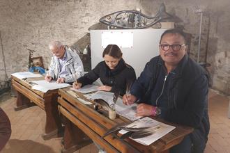 - Ab 15.00 Uhr eröffnet unsere Schreibwerkstatt, in der Sie das Schreiben historischer Schriftstile unter Anleitung selbst probieren können. Verfassen Sie, ausgerüstet mit Tintenfass und Federhalter oder Vogelfeder, Ihren ganz persönlichen Brief.
