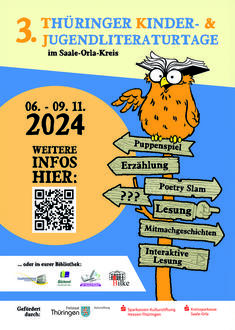 Der November naht mit großen Schritten - und er bringt Großes mit für junge Bücherfreunde im Saale-Orla-Kreis. Denn die Bibliotheken unseres Landkreises richten in diesem Jahr die 3. Kinder- und Jugendliteraturtage aus. Unterstützung in der Planung und Durchführung erhalten sie dabei vom Friedrich-Bödecker-Kreis Thüringen. Was nun erwartet die Leseratten?