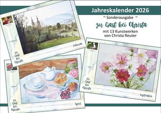 Nachdem sich der Neustädter Mal- und Zeichenzirkel in diesem Jahr mit einer Sonderausstellung "Erinnerungen und Abschied - Zu Gast bei Christa" im Museum für Stadtgeschichte Neustadt von dem langjährigen Mitglied Christa Reuter verabschiedete, verneigt er sich im Kunstkalender 2026 nochmal vor ihr. In ihren 30 Jahren Neustädter Mal- und Zeichenzirkel prägte und entwickelte sie den Verein nicht nur künstlerisch weiter, sondern beeinflusste ihn auch durch ihre Geselligkeit sehr nachhaltig. Zahlreiche Bilder sind in dieser Zeit entstanden und zeigen ihre Leidenschaft zur Kunst, verbunden mit ihrer neugierigen Entdeckungslust.
