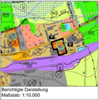 Folgende abweichende Darstellung im Flächennutzungsplan wurde an die Festsetzungen des Bebauungsplans angepasst: