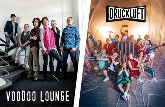 Gleich im Anschluss leitet die Band DRUCKLUFT einen Generationswechsel auf der Bühne ein: Die 12-köpfige Brass- und Performanceband präsentiert eine derart energiegeladene Blasmusik, dass einem als Zuhörer fast die Luft wegbleibt. Ein beeindruckendes Instrumentarium inklusive einer selbst konstruierten Röhrentrommel sorgt für den druckvollen Sound. Hervorgegangen aus einer Schülerband und durch zahlreiche Auftritte auf Festivals und im rheinischen Karneval zu einer anerkannten Größe gewachsen, bieten sie einen furiosen Mix aus spektakulären Instrumental-Medleys und eigenen, energiegeladenen Gesangsstücken, garniert mit überraschenden Showeffekten.