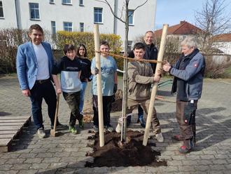 Die Schüler packten bei der Baumpflanzung kräftig an..