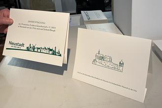 Der neueste Druck entstand nun für die seit 131 Jahren existierende Deutsche Exlibris-Gesellschaft e.V. (DEG). Im Jahr 2024 findet ihre Jahrestagung unter der Obhut der Mitarbeiter des Schloß Burgk statt. Neustadt an der Orla wird dabei der Tagungsort sein. Grund genug, die Einladung zu diesem Treffen in unserer Schaudruckerei entstehen zu lassen. Gemeinsam mit der Direktorin des Museum Schloß Burgk, Sabine Schemmrich und den Jüngern der schwarzen Kunst aus der Neustädter Schaudruckerei wurde das Layout entwickelt und im Beisein von Bürgermeister Ralf Weiße gedruckt.