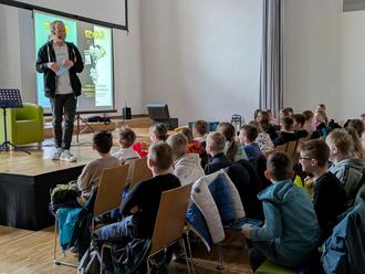 Im Rahmen einer Lesereise durch Thüringen konnte die Stadtbibliothek erneut den Kinderbuchautor Jens Reinländer in Neustadt begrüßen. Mit seiner lustigen und professionellen Art sowie seiner multimedialen Präsentation punktete er bereits im vergangenen Herbst bei den Zuhörern in der Kulturstadt. Mit seinem Buch „Edgar – Mein Leben zwischen Nobelpreis und Arschkarte“, das von Edgar, einem Quasselmonster im Ohr und dem mehr oder minder peinlichen Alltag des Protagonisten erzählt, zog er am 2. April rund 60 Kinder im AugustinerSaal in seinen Bann.