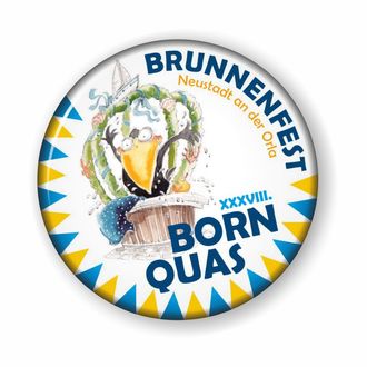 Der Brunnenfest-Button zur Unterstützung des BORNQUAS ist ab Mitte Mai in der TouristInformation erhältlich.