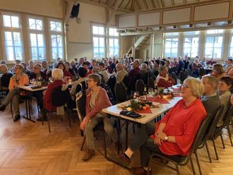 Es war zu spüren, unsere Seniorinnen und Senioren waren froh, dass es endlich wieder eine Weihnachtsfeier geben konnte. Der Saal des Landhotels am Mittelpunkt war gut gefüllt, die weihnachtliche Stimmung hatte alle Anwesende erfasst. Die Begrüßung der Neugeborenen stand diesmal nicht auf dem Programm, aber die Tradition der letzten Jahre mit der Überreichung des Begrüßungsgeldes, soll zur nächsten Weihnachtsfeier wieder ein Programmpunkt sein. Viel Applaus erhielten die Kinder der Vogteischule. Unter der Leitung von Madlen Müller führten sie Gedichte, Weihnachtslieder und Instrumentalstücke mit dem Keyboard und der Klarinette, auf. Der abschließende Tanz zu dem Weihnachtsklassiker „Last Christmas“ ging natürlich nicht ohne Zugabe über die Bühne. Das gesamte Programm eine sehr gelungene Vorstellung! Viel Zeit zum Verschnaufen hatten die Gäste nicht, um 17.00 Uhr hat der Gesangverein Niederdorla mit weihnachtlichen Weisen die Seniorinnen und Senioren begeistert und auf das nahende Weihnachtsfest eingestimmt.
