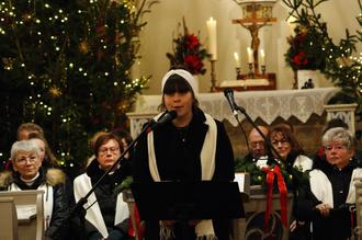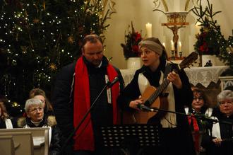 Ebenfalls als Chor-Neuling mit solistischem Beitrag konnte Anne-Sophie Schnepf mit Gitarre und Gesang im Duett mit Christopher Perz überzeugen. Ihr Vortrag „Mary did you know“, ein mittlerweile klassisches Weihnachtslied aus dem angelsächsichen Kulturkreis, sprach vor allem das jüngere Publikum in der Kirche an und wurde zusätzlich begleitet von ihren Bruder Christopher Baumgart am Schlagzeug und dem Dirigenten Peter Schnepf am Klavier.