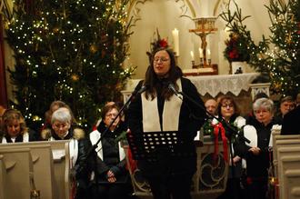 Wie vielerorts bei derartigen Traditionsveranstaltungen zu hören war lag es hier in der Sankt-Georg-Kirche förmlich in der Luft: „Endlich ist es wieder soweit!“ Die Kirche war zu dieser frühen Abendstunde am dritten Adventsonntag sehr gut gefüllt, was nicht nur die Mitglieder des Chores und der Bläservereinigung erfreute, sondern auch Pfarrerin Christiane Apitzsch-Pokoj. Sie erlebte in ihrer Amtszeit hier dieses Konzert zum ersten Mal und drückte in ihren Worten die Begeisterung und Freude darüber aus. Toll sei es nach dieser Zeit in eine so gut gefüllte Kirche zu blicken. In einem Gespräch vor dem Konzert sagte der Chorleiter Peter Schnepf gegenüber unserer Zeitung, er ist erleichtert, dass sein Chor gut über die Zeit der Pandemie gekommen sei. In dieser Zeit waren erst mal alle Aktivitäten und Auftritte abgesagt. Als Alternative haben wir dann im Sommer und Herbst des vorigen Jahres im Freien zwischen Kirche und Probenraum viel geprobt, so Peter Schnepf. Die Proben wurden unter anderem auch mal auf den Saal der Schänke verlegt, damit man weit genug auseinander sitzen konnte. Das ermöglichte, dass der Chor in diesem Jahr fast alle Auftritte wahrnehmen konnte. Mit der Mitgliederstärke hat der Chor trotz aller Einschränkungen in dieser Zeit keinerlei Probleme. Bei der Kreismitgliederversammlung der Chöre habe er gehört, dass viele seiner Kollegen Sorgen in Ihren Chören haben. Diese Sorgen müsse er sich zum Glück nicht machen. Zwar seien altersbedingt in dieser Zeit vier Mitglieder des Männerchores ausgeschieden, "aber mit 27 Sängerinnen und 23 Sängern sind wir einer der größten gemischten Chöre im Kreis“, so der Chorleiter resümierend über dieses Thema. Bei den Frauen seien in dieser Zeit sogar zwei Mitglieder dazu gekommen, wovon eine erst achtzehn Jahre alt sei. Nach dem Einzug der Chöre begleitet von Evangelischen Bläserensemble Langula mit dem Stück „Adeste fideles“ begrüßte die Pfarrerin alle Konzertbesucher mit herzlichen Worten.