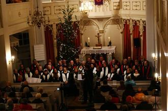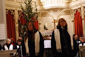 Nicht zu vergessen sei dabei der „Evangelische Bläserkreis“ der Gemeinde, der seit vielen Jahren diese Konzerte mit seiner Musik unterstützt. Nach dem festlichen Einmarsch der Chöre zu den Klängen des Bläserkreises „Als du kamst zur Erde nieder“ - einer traditionellen Weise aus Südtirol - begrüßte die Pfarrerin Christiane Apitsch-Pokoj alle Konzertbesucher in der sehr gut gefüllten Kirche. Desweiteren wartete der Frauenchor mit dem Lied „Mich trägt mein Traum“ in Anlehnung eines sehr bekannten Hits der Gruppe Abba mit dem Text und der Musik von Benny Anderson & Björn Ulvaeus auf, für das sie sehr viel Beifall von den Konzertbesuchern bekamen. Weiter herauszuheben wäre der von Lisa Dittrich gesungene Titel aus dem Disneyfilm „Wish“ „Weil der Wunsch es wert ist“ mit der Klavierbegleitung von Peter Schnepf, sowie der Titel „Mitten in der Nacht“ von Rolf Zuckowski, gesungen von Christine und Lisa Dittrich und Maya Paul. Als weiteres Solostück sang Maya Paul den Bryan Adams Titel „Christmas time“.