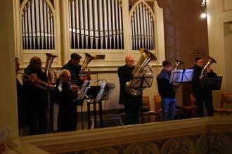Gemeinsam intonierten die Chöre gemeinsam mit dem Bläserkreis und den Besuchern dieses bekannte Weihnachtslied, was so stimmgewaltig die Kirche erfüllte. Ein weiterer Höhepunkt fast zum Schluss dieses Konzertes war noch das irische Weihnachtslied „Christmas in the old man’s hat“, das Anne-Sophie Schnepf einstudiert hatte mit dem gemischten Chor und selbst dirigierte. Mit rhytmischen Klatschen begleitete das Publikum zum Schluss diesem sehr guten Vortrag der Chöre.