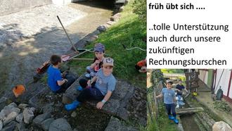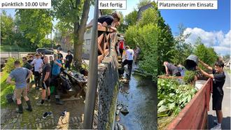 Gemeinsam wurde das Bachbett der Schille und der Mühlgraben von der Zengsmühle bis zur Brücke gesäubert. So ist dann freie Fahrt für die Enten zum Entenrennen am Samstag und das gepflegte Umfeld lädt Pfingstmontag zur Spritzenprobe ein.