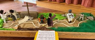 Und dieses Jahr sehr passend um das Osterfest herum, dem wichtigsten Fest der christlichen Kirche. Deshalb verwundert es auch nicht, dass wir es in unserem Evangelischen Kindergarten „Unterm Regenbogen“ in Langula, diese Geschehnisse wiedergeben. Zugegeben, eine vielleicht nicht ganz einfache Geschichte, die dennoch kindgerecht erzählt werden kann und will.