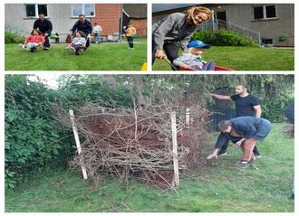Nachdem die Väter um 15.30 Uhr zahlreich versammelt waren, ging es los. Bei Spiel und Spaß, konnten Papa und Kind ihre Ausdauer unter Beweis setzen. Egal ob Dosenwerfen, Eierlauf oder Schubkarrenrennen die Kräfte gingen nicht aus. Auch beim Schminken, war das ein oder andere Bild auch bei Papa im Gesicht. Frei nach dem Motto „Gemeinsam sind wir stark!“ wurde im Vorfeld schon Totholz für eine Hecke gesammelt. Diese entstand mit allen gemeinsam, den Papas, Kindern, dem Heimatverein Kammerforst und Frau Pfarrerin Apitzsch-Pokoj im Garten in der Einrichtung. Nach getaner Arbeit stärkten sich alle beim frisch gebackenen Baguette und Wienerwürstchen.