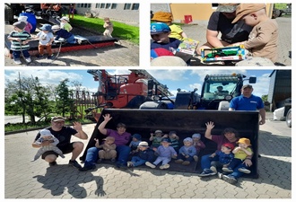 Ein weiteres Highlight, war vergangenen Donnerstag. Ein Besuch bei Landwirt Andreas Fett, Mit Frau Jana und Mitarbeiter Rico Stephan. Die Kinder durften sich mit in verschiedene Traktoren setzen. Am besten hat den Kindern die Kehrmaschine gefallen, diese wurde gleich in Beschlag genommen. Zum Abschluss überreichte uns Andreas noch ein tolles Geschenk. Traktor, Mähdrescher und Radlader zum Spielen für den Gruppenraum. Dieses Erlebnis, wir auch bei den Kindern in Erinnerung bleiben. Vielen Dank für den schönen Vormittag.