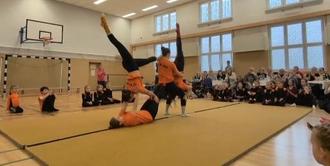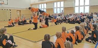 Am Tag zuvor wurden in der Turnhalle zunächst alle Sportgeräte aufgebaut. Anschließend richteten viele fleißige Helfer die Halle her. Einige Kinder nutzten gleich noch einmal die Möglichkeit, um ihren einstudierten Übungen den letzten Schliff zu verleihen.