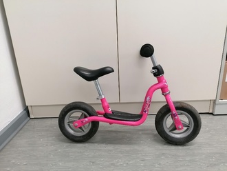 am 30. April 2025 ist das auf dem Foto zu sehende Laufrad an der Feuerwehr in Oberdorla vergessen worden. (Farbe: Rosa)