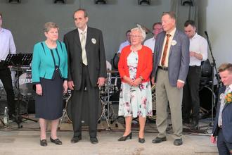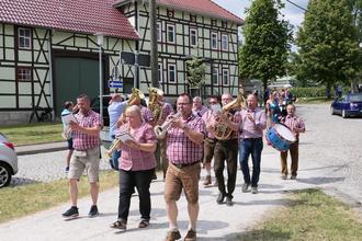 Und noch etwas kam in Schwung: Die Rechnung wird immer mehr eine Sache des ganzen Dorfes. So halfen in diesem Jahr viele Handwerker und Interessierte aus dem Dorf mit, die Toiletten auf dem Anger fertig zu bekommen. Pfingsten als Ziel wurde erreicht. Alle beteiligten Handwerker wurden auf dem Anger genannt. Es gab großen Applaus.