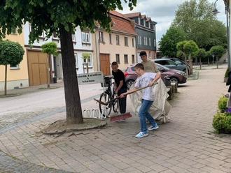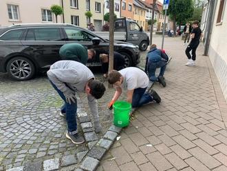Am 24. Mai 2023 machte die Klasse 7b zusammen mit ihrer Klassenlehrerin Frau Siemon den Anfang. Über den freundlichen Kontakt einer Mitschülerin zum Bauhof Großengottern ging es zum Unkraut entfernen in die Marktgasse. Die Baumscheiben brauchten dort eine Reinigungskur. Keine einfache Aufgabe, da diese bekannterweise oft als Hundetoilette dienen und nicht jeder Hundebesitzer daran denkt, die Hinterlassenschaft seines lieben Vierbeiners auch zu entfernen. Aber das meiste war zum Glück reines Unkraut. Ausgestattet mit entsprechendem Arbeitsgerät, Eimern, Besen und Kratzern ging es dem Unkraut zu Leibe. Das Wetter spielte auch mit. Es war weder zu warm, noch zu nass. Trotzdem waren nach ca. 60 Minuten erste Ermüdungserscheinungen bei den Schülern und Schülerinnen zu erkennen. Aber die geleistete Arbeit war schon gut sichtbar. Ein Schüler bekam sogar von einem Anwohner eine Flasche zu Trinken geschenkt, da sich dieser so darüber freute, endlich mal wieder eine saubere Einfahrt zu besitzen.