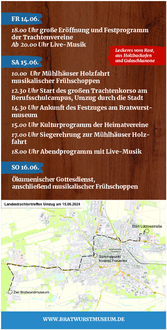 | • | Ab 14.30 Uhr zeigen die Vereine ihr Können bei einem abwechslungsreichen Programm auf dem Gelände des Bratwurstmuseums. |