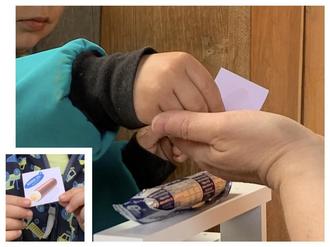 Jedes Kind bekommt im Laufe des Vormittags eine Eismarke und alle freuen sich als ein Glöckchen klingelt und die Eisdiele „Unterm Regenbogen“ eröffnet wird.