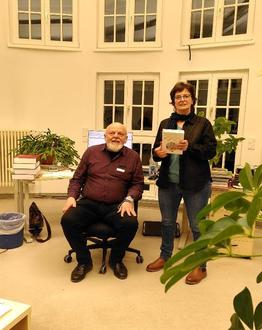 Durch den persönlichen Kontakt zwischen der ortsansässigen Annegret Töpp und dem Mitarbeiter der Nationalbibliothek Hartmut Krüger, der seit 36 Jahren in der DNB tätig ist, konnte die Festschrift in doppelter Ausführung übergeben werden.