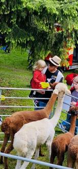 Im Anschluss zogen wir mit den Gästen zum gemütlichen Kaffeetrinken auf unsere Kirchwiese weiter. Eine willkommene Gelegenheit zum Austausch und Genießen, bevor die großen Überraschungen des Tages starteten. Auf dem Außengelände sorgten Alpakas zum Streicheln und Füttern sowie Ponys zum Reiten für strahlende Kinderaugen. An weiteren Stationen konnten sich die kleinen Gäste schminken lassen, bunte Tattoos bekommen oder ihr Glück am Glücksrad versuchen - ein Dreh, ein Preis!