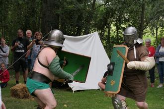 Zum Römermarkt am Opfermoor konnte man diese Geschichte hautnah und authentisch erfahren. Wer wollte, plauderte mit den Händlern und Handwerkern über die römische Geschichte. Es gab viel zu erfahren. Am meisten erfahren kann man am Ort vom Vogteier Matthias Stollberg. Er hat viel Wissen aus Büchern und hat vor allem als Archäologe historische Gegenstände in der Hand gehabt. Er reiste wirklich durch die Zeit.